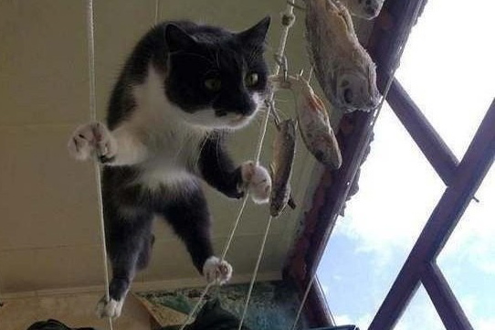От нашего 22 этажного дома к соседнему 17 этажному дому, протянуты провода. Они проходят очень близко к нашему 18 – му этажу, прямо перед окнами. Иногда на них садятся птицы. Одна ворона прилетает часто, держится за провод лапами и висит головой вниз. Висит долго. Потом улетает.