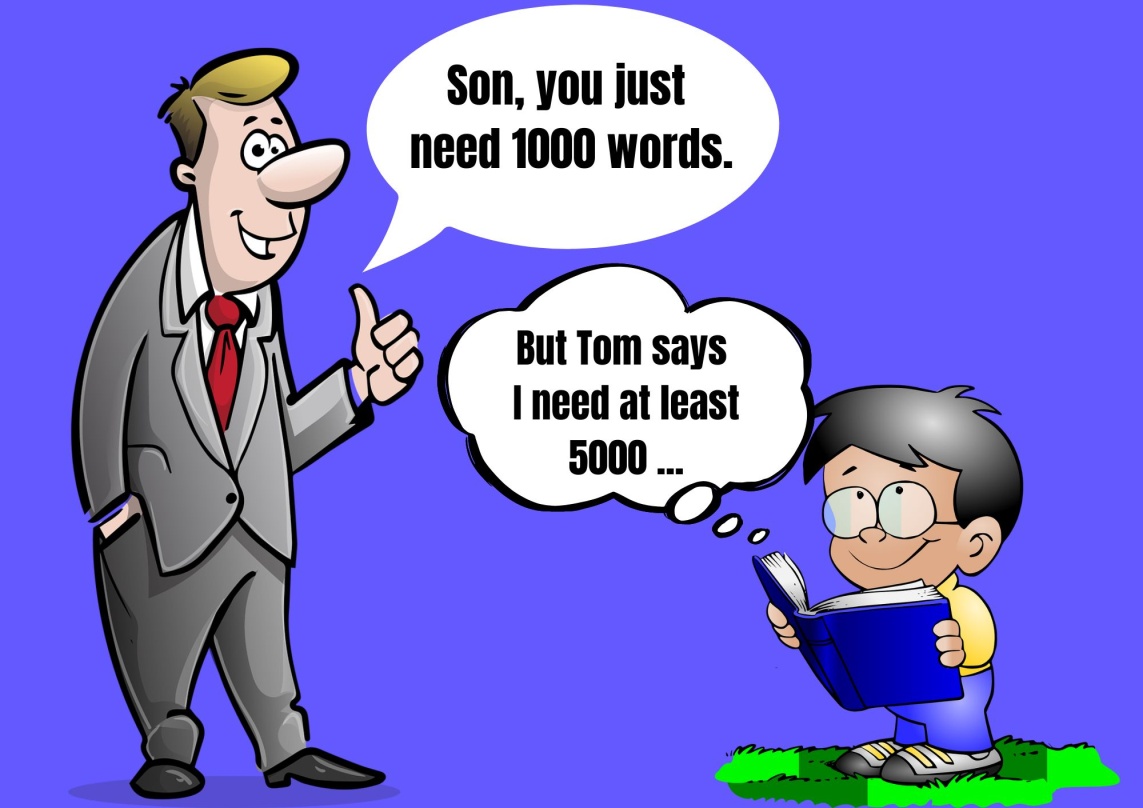Но действительно ли нужно знать 42 000 слов? В большинстве случаев, для уверенного общения на бытовые темы понадобится минимум 5 000 – 7000 слов. Если же вы хотите сдать международный экзамен на высокий балл или читать книги в оригинале – 15 000 слов.