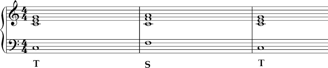 Гармонический оборот T-S-T в до мажоре (скачкообразное соединение)