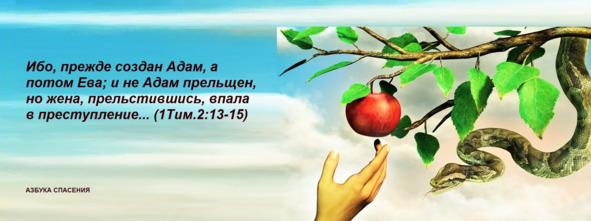 Ибо прежде создан Адам, а потом Ева; и не Адам прельщен, но жена, прельстившись, впала в преступление… (1Тим.2:13—15).