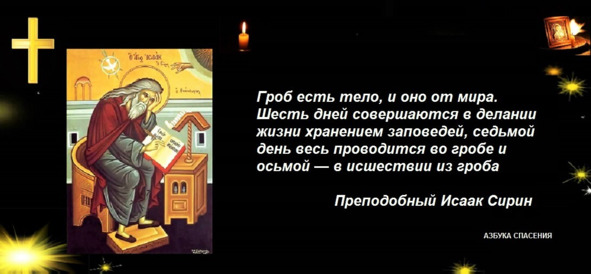 Истинная и несравненная суббота есть гроб, показующий и знаменующий совершенное упокоение от скорбей, от страстей и от сопротивного покою делания. Там субботствует человечество, и душа, и тело… Бог в шесть дней привел в порядок весь состав мира сего, устроил стихии, состав их предал приснодвижному движению для служения, и не остановятся они в течении до своего разорения. Их-то силою, то есть силою первобытных стихий, составил Он и наши тела. Но и стихиям не дал покоя в движении их, ни телам нашим, из стихий происшедшим, отдохновения от делания. Предел же отдохновения от делания положил в нас, тогда как тела наши последуют первому своему сродству, и это есть разрешение от жизни сей. Так и Адаму сказал: В поте лица твоего снеси хлеб твой. И долго ли будет сие? …Дондеже возвратишися в землю, от неяже взят еси, и которая возрастит тебе терния и волчцы (Быт.3:18,19).