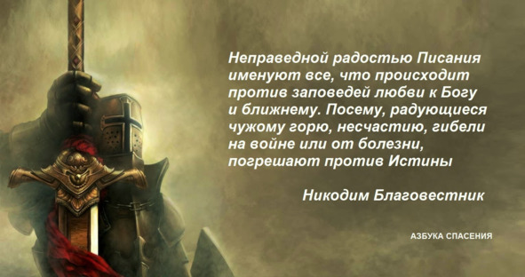 Любы, сказано, не радуется о неправде, радуется же о истине (Кор.13:6). Нам приходится часто видеть неправедные, греховные дела человеческие или слышать о них, и мы имеем грешный обычай: радоваться таким делам и выражать без стыда радость свою безумным смехом. Худо, не по-христиански, нелюбовно, богопротивно мы делаем. Это значит, что мы не имеем в сердце христианской любви к ближнему: ибо любовь не радуется о неправде, радуется же о истине. Перестанем вперед так делать, да не осудимся вместе с делающими неправду.