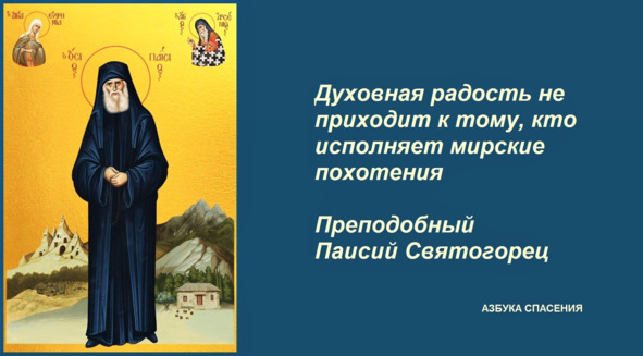 Святитель Иоанн Златоуст: «Радость… духовную и разумную производит не что иное, как сознание добрых дел, – посему, кто имеет добрую совесть и такие же дела, тот может постоянно праздновать. Духовная радость честно и благоприлично приводит душу в единение с Богом, наполняет сладостью также и тех, кто находится с таким человеком в сношениях».