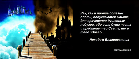 Главное лекарство против рака – покаяние, перестать, наконец, грешить пред лицем всевидящего Бога, смири гордыню, уврачуй душу добрыми делами, так преуготовишь ее к жизни вечной… Страшен не рак, как болезнь и убийца тела, которое всеравно срастворится с перстью, откуда и взято, а рак души, т.е. грехи нераскаянные, которые увлекут ее в огнь неугасимый и муку вечную.