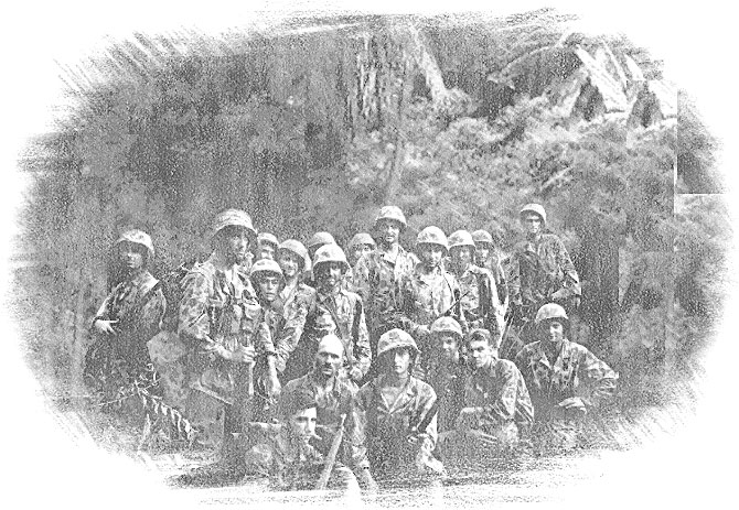 Ошалевшие младшие чины со сползшими на лоб тяжелыми касками озирались в сторону густой чащи джунглей, куда, по всей видимости, лежал их дальнейший путь.