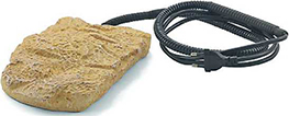 Альтернативным источником тепла в террариумах, практически не влияющим на фоновую температуру, являются нагревательные коврики, кабель и искусственные «камни» с реостатом. В настоящий момент зооиндустрия начала выпускать нагреватель в виде искусственной ветки для древесных видов. Так что выбор этого оборудования очень широкий и в основном представлен китайскими производителями. Эти приборы удобно использовать в террариумах небольших размеров, так как исключается перегрев всего объема террариума. Здесь важно учесть стартовый нагрев элементов, особенно это касается «искусственного камня», представляющего из себя изделие из твердого пластика и нагревательного элемента который располагается внутри. С точки зрения электробезопасности вопросов не возникает, он достаточно герметичный. Но есть много нареканий со стороны любителей при его эксплуатации, так как начальная температура «камня» после включения поднимается выше +50 °С. Нагревательный камень имеет на поверхности несколько термальных точек с повышенной температурой и таким образом возникает опасность для рептилии получить ожоги. В отличие от ламп вы не сможете проконтролировать этот нагреватель на предмет его корректной работы. Даже если установлен реостат, очень часто происходит его сбой, в результате чего температура неконтролируемо повышается и, животные получают термальные ожоги. Проблема усугубляется низкими температурами в террариуме в период весеннего переходного сезона или периода перед зимней диапаузой, когда животные рефлекторно повышают температуру своего тела в связи с близким источником тепла.