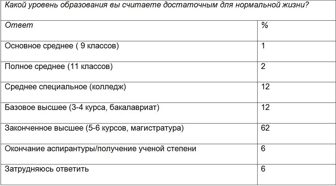 "Какой уровень образования вы считаете достаточным для нормальной жизни?" – был вопрос одного интернет – опроса.