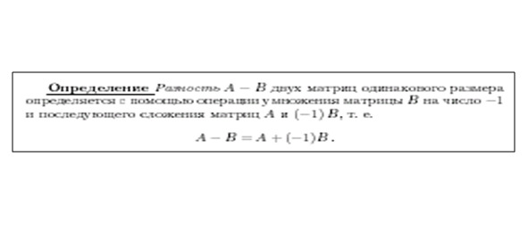 Операция сложения определена только для матриц одинаковых размеров. Результатом сложения матриц A = || ai j || и B = || bi j || является матрица C = || ci j ||, элементы которой равны сумме соответствующих матричных элементов: