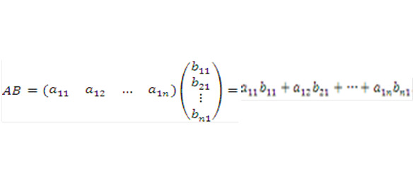 Пусть А = – матрица-строка размера 1×n, и пусть В – матрица-столбец размера n×1. (Иначе говоря, пусть число элементов в строке матрицы A совпадает с числом элементов в столбце матрицы B.)
