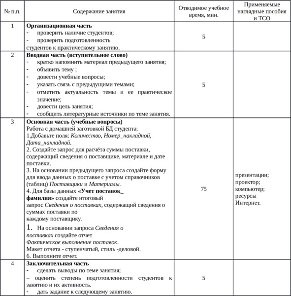 – получить практические навыки в решении задач обработки данных с использованием Access.