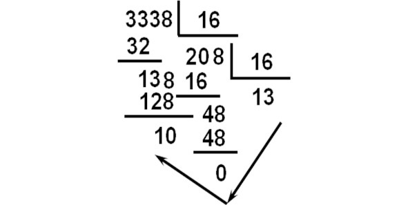 Пример использования данного алгоритма для перевода числа 3338,78 в шестнадцатеричную систему счисления