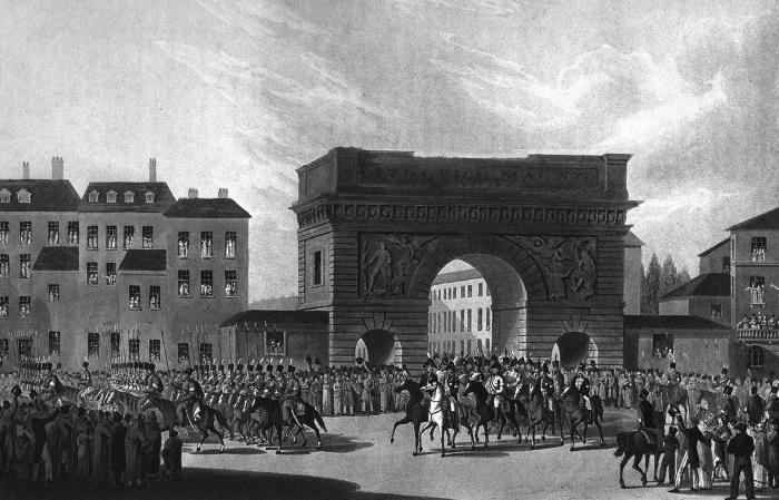 Неизвестный художник. Сен-Мартенские ворота, вход русских войска в Париж 31 марта 1814 г.