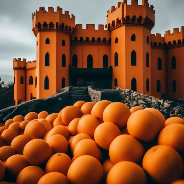 Они пошли дальше и за холмами вскоре увидели замок, вначале которого высились стены, тоже, естественно, оранжевого цвета.