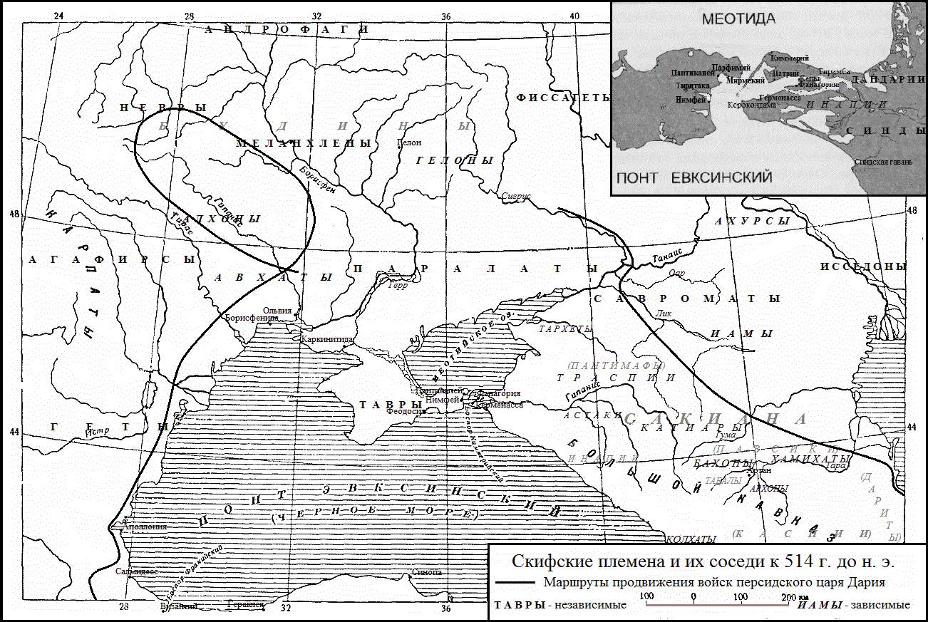 Геродот. История, 7. 64Подавив мятежи и восстания, вызванные убийством персами законного царя Бардии, Дарий возглавил поход против саков. В 519 г. до н. э. персидские войска вторглись в земли сигнахов и далийцев1 и переправились через Аракс. Сакские племена мужественно сопротивлялись, но численный перевес был слишком велик, и вскоре персы овладели большей частью владений массагетов2 и их союзников, после чего военные действия переместились на северные отроги Краукасиса3.