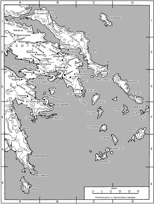 В Беотию, со всех сторон, кроме юго-востока, окруженную горами, можно попасть по узкой долине Кефисса. Ее обширные и плодородные равнины, как и в Фессалии, летом выжжены солнцем, зимой же обильно увлажняются. Две основные равнины отделены друг от друга невысоким кряжем – отрогом горы Геликон. На этом кряже построены Фивы. На богатой северной равнине с центром в Орхомене лежит озеро Копаис, в которое впадает Кефисс. Дно озера известняковое, изрыто туннелями; когда они прочищаются, озеро мелеет. Южную равнину с плодородной почвой пересекает река Асоп, которая протекает по Аттике и впадает в море около Оропа. В древности Беотия славилась зерном, лошадьми, скотом и овцами. Ее население не занималось мореходством, хотя эта страна выходит к Эвбейскому проливу и Коринфскому заливу.