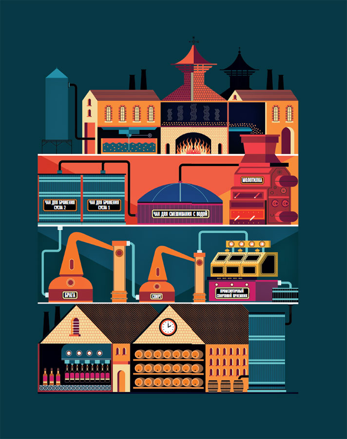 Процесс производства солодового виски: соложение, измельчение, затирание, ферментация, дистилляция и, наконец, выдержка