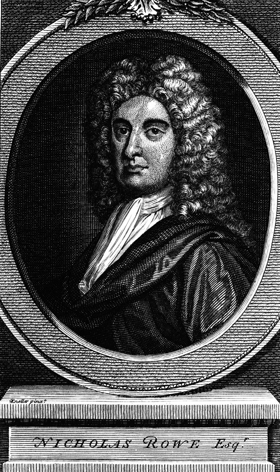 Гравированный портрет Николаса Роу, использовавшийся на фронтисписе собрания его сочинений; выполнен с портрета кисти сэра Годфри Неллера