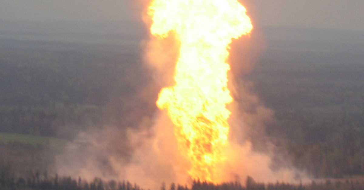Пламя высотой около 50 м бушевало до 16 часов, даже после того, как автоматически закрылись заглушки, пока полностью не выгорел газ, оставшийся в трубах на данном участке.