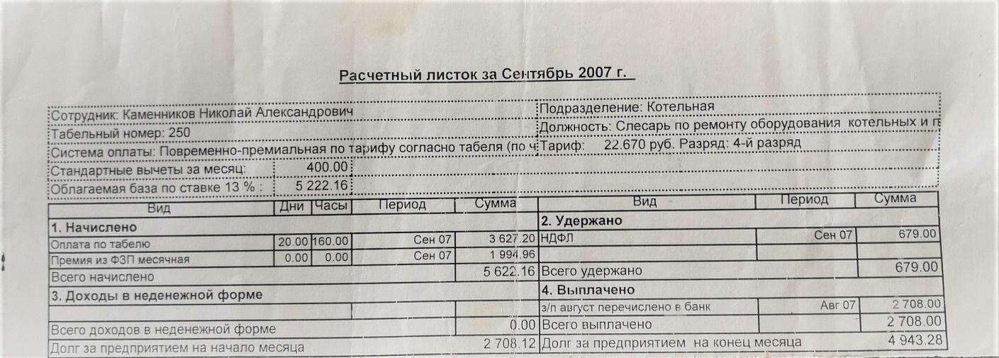 Расчетный листок слесаря 4 разряда на Кирпичном заводе