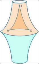 ─ Как видим в этой «преувеличенной» математической фантазии сумма углов треугольника, нарисованного на поверхности псевдосферы, значительно меньше двух прямых.