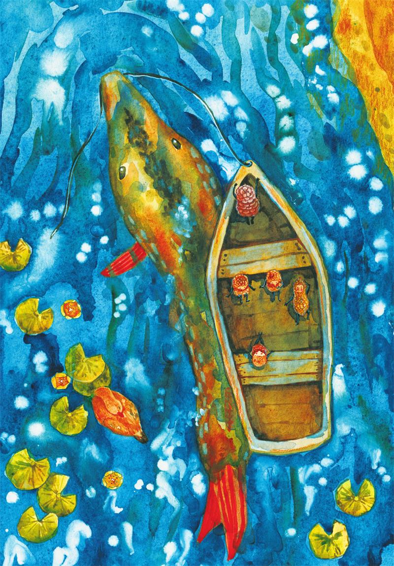 И большая щука, ожидавшая команды в воде с верёвкой во рту, рванула вперёд с огромной скоростью.