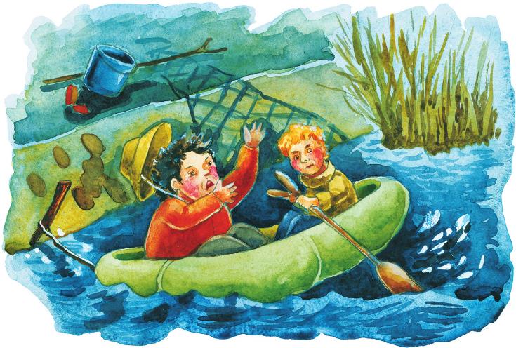 – Васька, вставай скорее! Там наша лодка сама по себе по реке плывёт! Давай поймаем её!