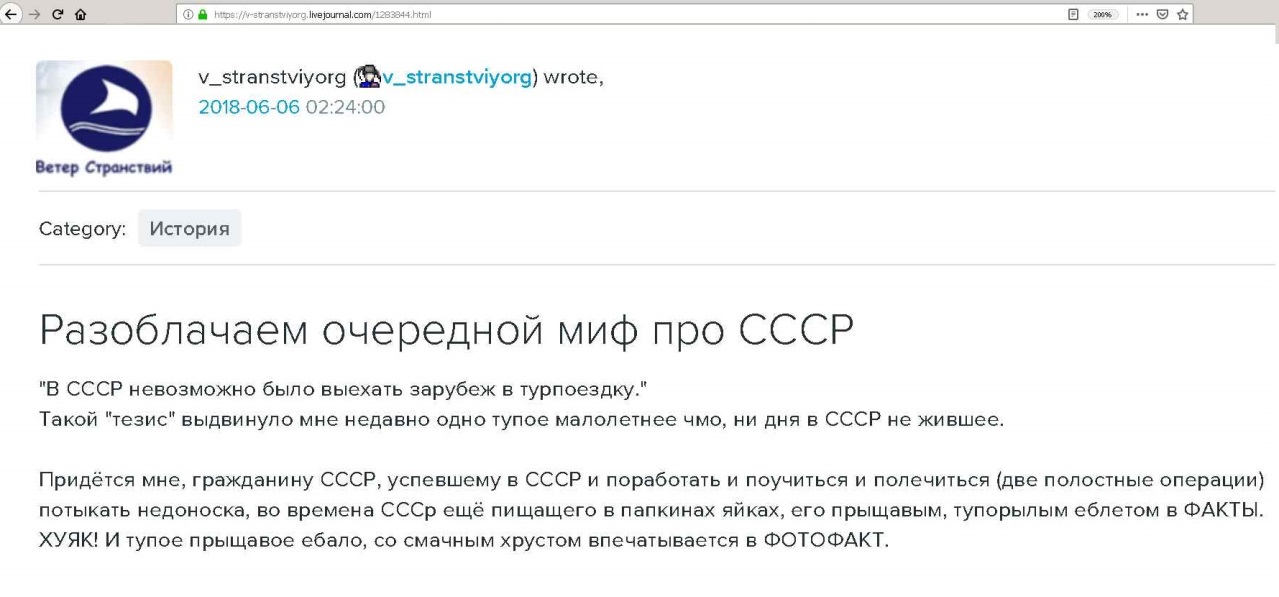 Принтскрин примера дискуссии на тему поездок советских туристов за рубеж.