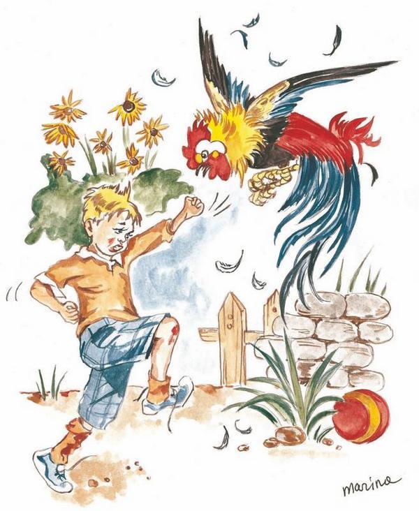А где Петя был – проказник,Он всегда испортит праздник.Как-то встретились два Пети,Это видели все дети.Шум стоял и пыль столбом,Посмотреть сбежался дом.В результате наш петухОказался слеп и глух.Он не видел ничего,Кроме клюва своего.Красный гребень набекрень,И хромал петух весь день.Уши заложил песок,Но сражался он как мог.Пострадал и Петя тоже,Стал на клоуна похожий.Красный нос, синяк под глазом,Но не плакал он ни разу.Так похожи стали Пети –Лучше нет друзей на свете.