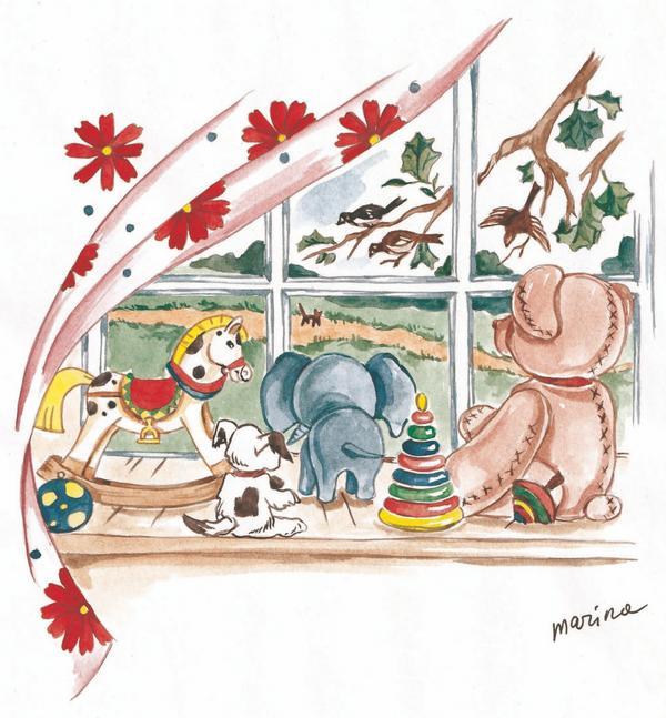 Разноцветные игрушки:И собачки, и зверушки,Коники и слоники –Лежат на подоконнике.Смотрят все в окошко,Бегает там кошка.Чирикают воробышки –Любят птички зёрнышки.Собачка там зевает,Наверное, скучает:– Ну, когда же слоникиПоявятся на дворике?И за ними те зверушки,Что заснули на подушке?Вот проснулись два верблюда,Громко застучали в блюда.Закричали, зашумели,Мигом звери озверели.Спрыгнули на дворики,Забыв про подоконники.Закружился весь народ,Позабыв про огород,И забыл про грядку,Вышли на зарядку.Мигом все построились,Будто и не ссорились.Двор весь закружилсяИ развеселился.Разноцветные игрушки:И собачки, и зверушки…