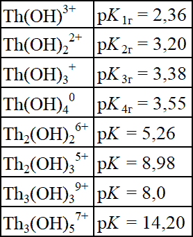 Например, для различных форм тория приведены следующие значения ступенчатых констант гидролиза [4]: