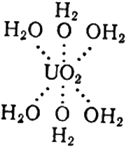 Ион UO22+ имеет координационное число 6. Атомы кислорода образуют линейную конфигурацию О–U–O и расположены на коротких расстояниях от атома урана, а шесть лигандов Н2О находятся вокруг атома урана в положениях, отвечающих конфигурации гексагональной бипирамиды: