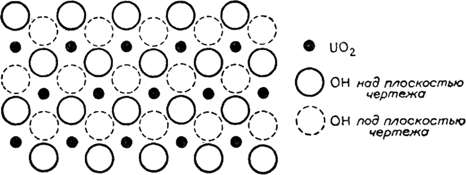 Рис. 1.9. Конфигурация слоя UO2(OH)2 в кристалле UO3 · 2H2O [7].