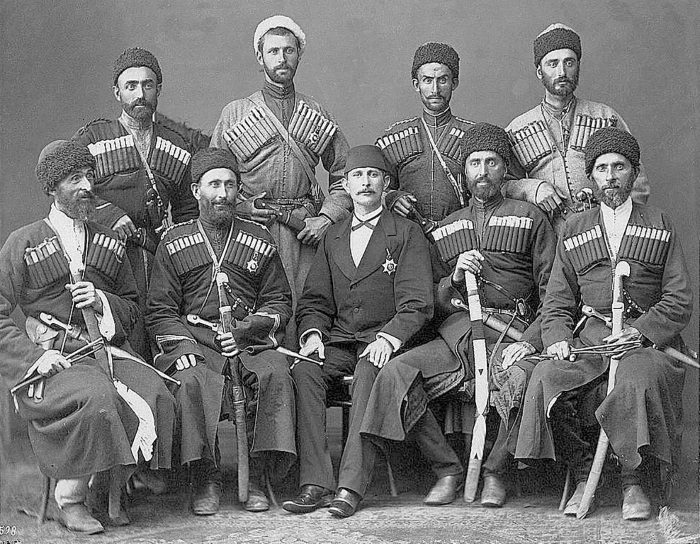 Все незатейливое хозяйство в походной жизни черкеса находилось при нем. Отвертка винтовки служила огнивом, кремень и трут висели на поясе в кожаной сумке. В одной из патронных гильз лежали серные нитки и щепки смолистого дерева для быстрого разведения огня. Рукоять плети и конец шашки были обмотаны навощенной тканью, скрутив ее, он получал свечку. Богатый черкес всегда носил в кармане кабалар (буссоль), чтобы определять направление, куда обращаться лицом во время молитвы. Конь его был отлично выезжен и повиновался уздечке в совершенстве. Он не боялся ни огня, ни воды. Черкесские наездники шпор не употребляли, а погоняли лошадь тонкой плетью с привязанным на конце плоским куском кожи, чтобы при ударе не причинять лошади боль, а только понукать ее хлопаньем плети.