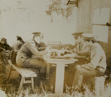 Первый справа. А рядом с ним Баранчиков. Для того, чтобы увеличить время проведение стрельб, летом мы уводили полуроту на стрельбище сразу после подъема, даже зарядку пропуская в этот день. Ну и завтрак из столовой доставлялся прямо туда.