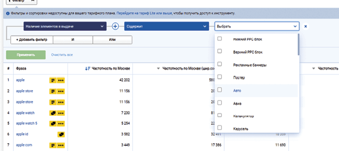 Вы также можете использовать фильтры Serpstat, чтобы ограничить поиск запросами, инициирующими определенный тип поиска (и, следовательно, конкретное намерение):