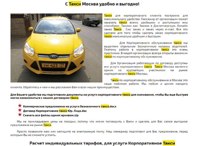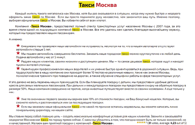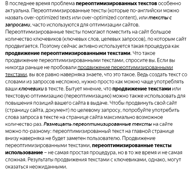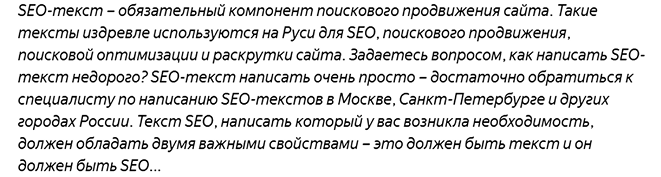 Вот так выглядит текст реального сайта, который недавно попал под фильтр «Баден-Баден»: