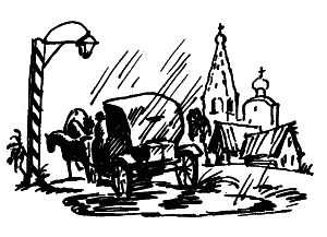 Когда экипаж въехал на двор, господин был встречен трактирным слугою, или половым, как их называют в русских трактирах, живым и вертлявым до такой степени, что даже нельзя было рассмотреть, какое у него было лицо. Он выбежал проворно, с салфеткой в руке, весь длинный и в длинном демикотонном сюртуке со спинкою чуть не на самом затылке, встряхнул волосами и повел проворно господина вверх по всей деревянной галдарее показывать ниспосланный ему Богом покой. Покой был известного рода, ибо гостиница была тоже известного рода, то есть именно такая, как бывают гостиницы в губернских городах, где за два рубля в сутки проезжающие получают покойную комнату с тараканами, выглядывающими, как чернослив, из всех углов, и дверью в соседнее помещение, всегда заставленною комодом, где устраивается сосед, молчаливый и спокойный человек, но чрезвычайно любопытный, интересующийся знать о всех подробностях проезжающего. Наружный фасад гостиницы отвечал ее внутренности: она была очень длинна, в два этажа; нижний не был выщекатурен и оставался в темно-красных кирпичиках, еще более потемневших от лихих погодных перемен и грязноватых уже самих по себе; верхний был выкрашен вечною желтою краскою; внизу были лавочки с хомутами, веревками и баранками. В угольной из этих лавочек, или, лучше, в окне, помещался сбитенщик с самоваром из красной меди и лицом так же красным, как самовар, так что издали можно бы подумать, что на окне стояло два самовара, если б один самовар не был с черною как смоль бородою.