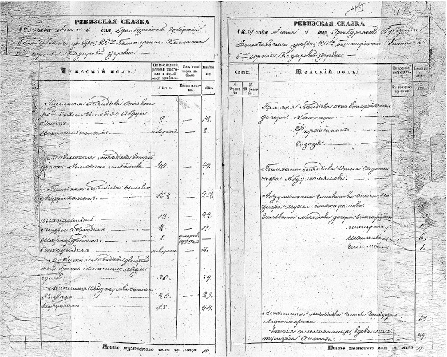Ревизская сказка 1859 года по деревне Новое Катаево Оренбургской губернии[6]