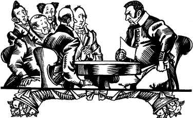 Городничий, попечитель богоугодных заведений, смотритель училищ, судья, частный пристав, лекарь, два квартальных.Городничий. Я пригласил вас, господа, с тем, чтобы сообщить вам пренеприятное известие: к нам едет ревизор.