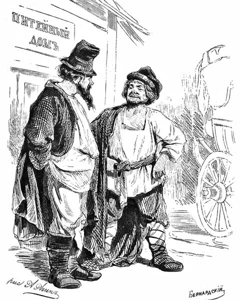 Когда экипаж въехал на двор, господин был встречен трактирным слугою, или половым, как их называют в русских трактирах, живым и вертлявым до такой степени, что даже нельзя было рассмотреть, какое у него было лицо. Он выбежал проворно с салфеткой в руке, весь длинный и в длинном демикотонном сюртуке со спинкою чуть не на самом затылке, встряхнул волосами и повел проворно господина вверх по всей деревянной галерее показывать ниспосланный ему богом покой. – Покой был известного рода; ибо гостиница была тоже известного рода, то есть именно такая, как бывают гостиницы в губернских городах, где за два рубля в сутки проезжающие получают покойную комнату с тараканами, выглядывающими, как чернослив, из всех углов, и дверью в соседнее помещение, всегда заставленною комодом, где устраивается сосед, молчаливый и спокойный человек, но чрезвычайно любопытный, интересующийся знать о всех подробностях проезжающего. Наружный фасад гостиницы отвечал ее внутренности: она была очень длинна, в два этажа; нижний не был отштукатурены и оставался в темно-красных кирпичиках, еще более потемневших от лихих погодных перемен и грязноватых уже самих по себе; верхний был выкрашен вечною желтою краскою; внизу были лавочки с хомутами, веревками и баранками. В угловой из этих лавочек, или, лучше, в окне, помещался сбитенщик с самоваром из красной меди и лицом так же красным, как самовар, так что издали можно бы подумать, что на окне стояло два самовара, если б один самовар не был с черною, как смоль, бородою.