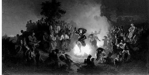 «Вечер накануне Ивана Купала». Иван Купала – народный языческий праздник восточных славян, отмечаемый в дни летнего солнцестояния. По времени совпадает с христианским праздником Рождества Иоанна Предтечи. Ночь накануне праздника по важности ритуалов и обрядов, связанных с водой, огнем и травами, превосходит сам праздничный день. В ночь на Ивана Купала принято было совершать брачные обряды, выбирая будущего суженого: прыгать через костер, обмениваться венками, искать цветок папоротника, купаться в утренней росе.