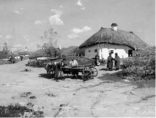 «Избенок десять, не обмазанных, не укрытых…» Самая простая сельская хата, мазанка, состояла из каркаса (переплетенные тонкие ветви дерева или хвороста) или возводилась из сырцового кирпича (брикеты из смеси глины, соломы и навоза, обсушенные на солнце). На стены мазанки снаружи и изнутри обычно наносили известь, крышу покрывали соломой или камышом.