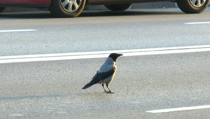 Что за день, ну что за день, бормотала ворона, с утра собираясь в район, где объездная дорога образует с прямой магистралью, ведущей в центральные районы города, очень оживленный перекресток.Спала она на окраине, недалеко от нужного места, в прилегающем густом кустарнике отвратительно, по причине того, что ей все время мерещились ночные совы. Уже была осень и в темные ночи, когда сон особенно крепкий, эти извечные разбойники, видевшие прекрасно в темноте, нападают бесшумно и воронам никогда не удается вырваться из их лап. Вот и этой ночью малейший шорох вызывал у вороны страх, что вблизи находится сова, готовая наброситься на неё. Она встряхивала крыльями и пыталась всмотреться в ночную тьму, но потом вновь впадала в сон.Уже с рассветом ворона покинула место такого неуютного ночлега и решила позавтракать где-нибудь, пролетая вдоль объездной магистрали, от которой были съезды на городские улицы