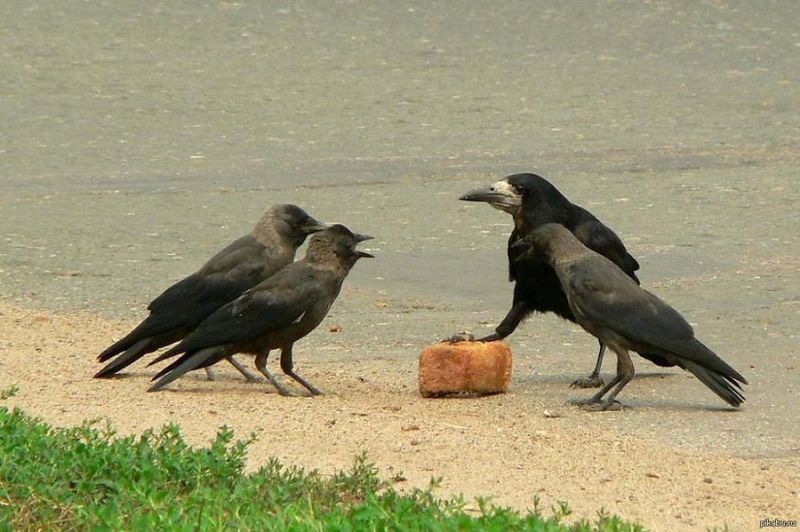 Едва ворона успела немного пролететь, как увидела забавную картину. Небольшая собака где-то умудрилась найти приличный кусок какой-то вкуснятины, сразу его не съела, по причине того, что была сыта и бежала вдоль дороги. Продукт держала крепко-накрепко в зубах, а над ней кружили три вороны, нападая, то одна, то другая, с желанием отобрать это лакомство. Вид на это был смешным. Собака, не желала отдавать добычу, но и вороны нападали настойчиво. Проезжающие водители, иногда неожиданно резко притормаживали из любопытства и улыбались.