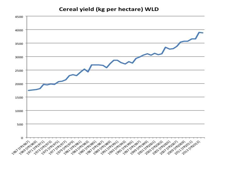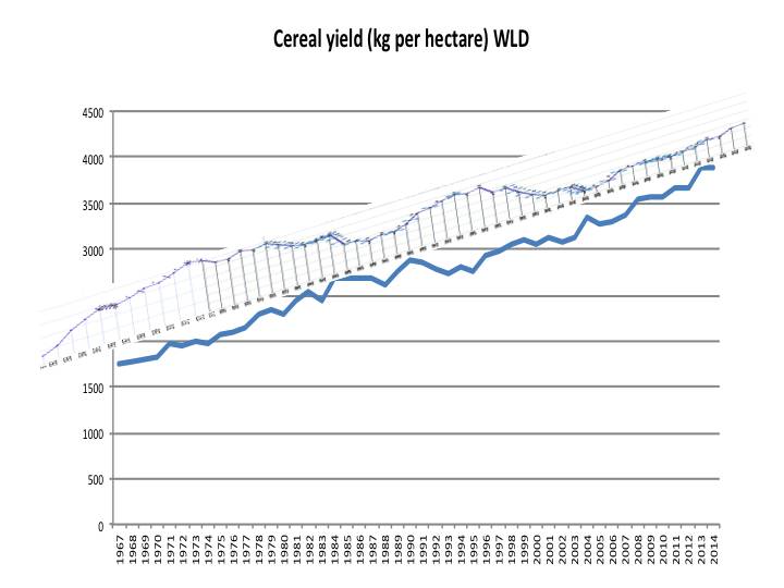 In some cases we can rotate the graphs. Next, the example of world cereal yield according to the World Bank data. The graph is automatically plotted on the bank's website.