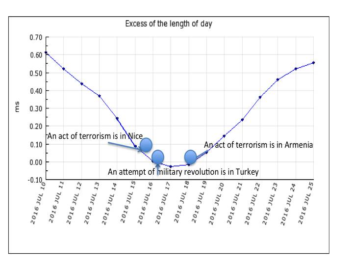 With these graphs and corresponding numeric data any phenomenon, any process in the world for a particular period of time since 1962 can be correlated with cosmic energy dynamics, related to the Earth's rotational velocity. This can be done at the scale of days, as wells as at the scale of years, decades.