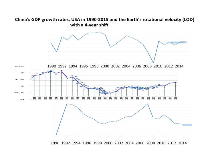 A relationship was identified between the change rates of the Earth's rotational velocity and the GDP growth rates of some countries.