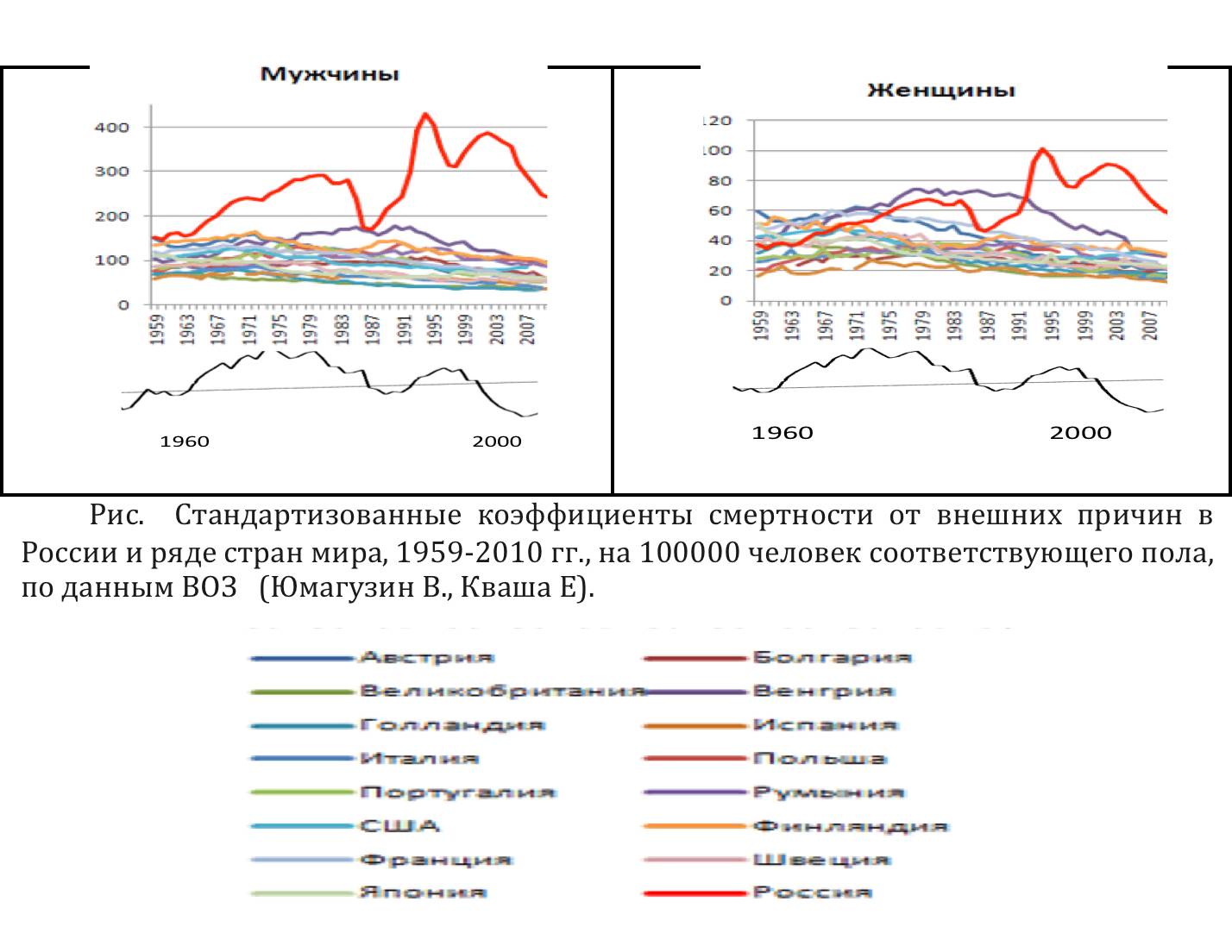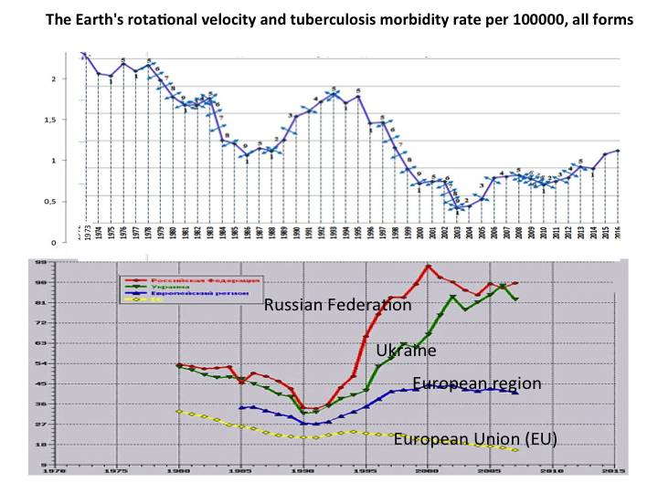 We are used to relating people's morbidity to medicine funding, solar activity, etc. But here the Earth's rotational velocity as a factor simply dominates all the other. Naturally, it remained outside of the scientific analysis framework. This is often explained by social transformations of that time. Indeed, in the countries where there was no redeployment these trends are less pronounced. Although in the countries with no redeployment and higher medicine funding the relationship between the morbidity rate and the Earth's rotational velocity is weaker, nevertheless it still exists.