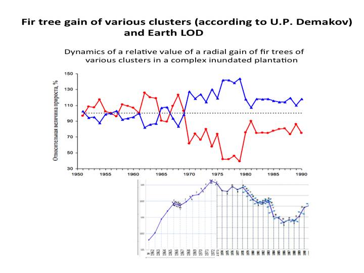 Yu. P. Demakov discovered two tree clusters: one of them grows better at the growth of the Earth's rotational velocity, whereas the other – at its slowdown. GDP growth rates of different countries, achievements of athletes are similarly divided into two clusters, two groups.