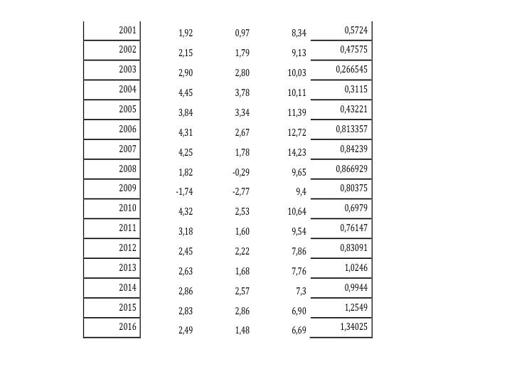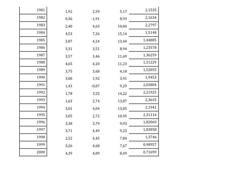 Here are the data for the time available for the Earth's rotational speed, for changes in the value of the consumer basket, i.e. the CPI (percentage related to the previous year), and solar activity. These data are from the beginning of the XIX century.